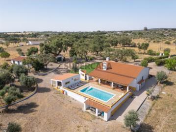 Quinta Rústica Totalmente Mobilada próxima de Évora Piscina aquecida, picadeiro, vinha e espaço exterior privativo a poucos minutos de Azaruja e da cidade histórica de Évora Descubra esta fantástica quinta totalmente mobilada e equipada, pronta a habitar, situada a poucos minutos da pitoresca vila de Azaruja e a apenas 19 km de Évora, cidade que será Capital Europeia da Cultura 2027. A habitação oferece todo o conforto aliado ao charme rústico: - Cozinha totalmente equipada, com despensa - Sala ampla com lareira e recuperador de calor - 4 quartos espaçosos (um deles em suite) - 2 casas de banho com cabine de hidromassagem - Pavimento em mosaico rústico nas áreas sociais e soalho flutuante em carvalho envelhecido nos quartos - Sistema de aquecimento central e refrigeração - Janelas em alumínio com vidros duplos, portadas rústicas e mosquiteiros O espaço exterior é um verdadeiro refúgio na natureza: - Piscina de água salgada aquecida, com zona de lazer e alpendre - Churrasqueira, passeio